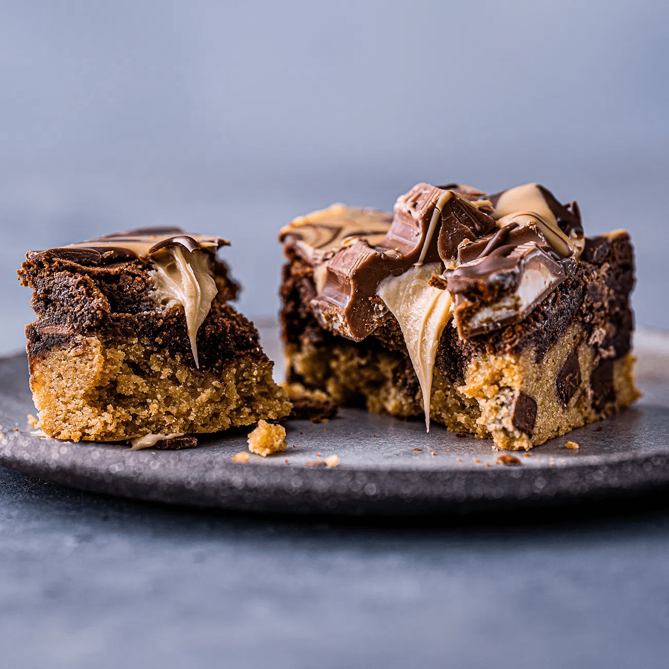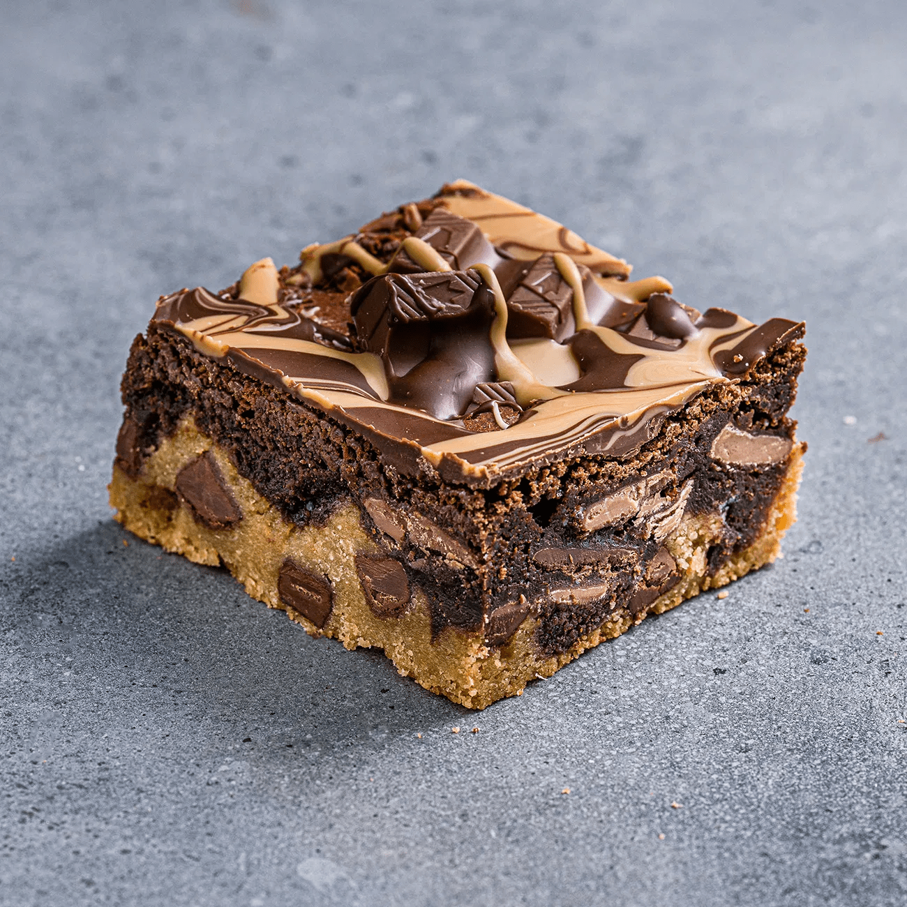 A Gluten free shortbread base with luxurious hazelnut butter and roasted hazelnuts, topped with a thick layer of rich and luxurious chocolate hazelnut caramel. It is then sprinkled liberally with roasted, nibbled hazelnuts and an extra chocolate drizzle.
