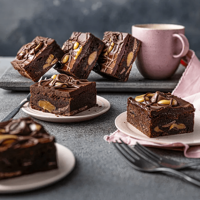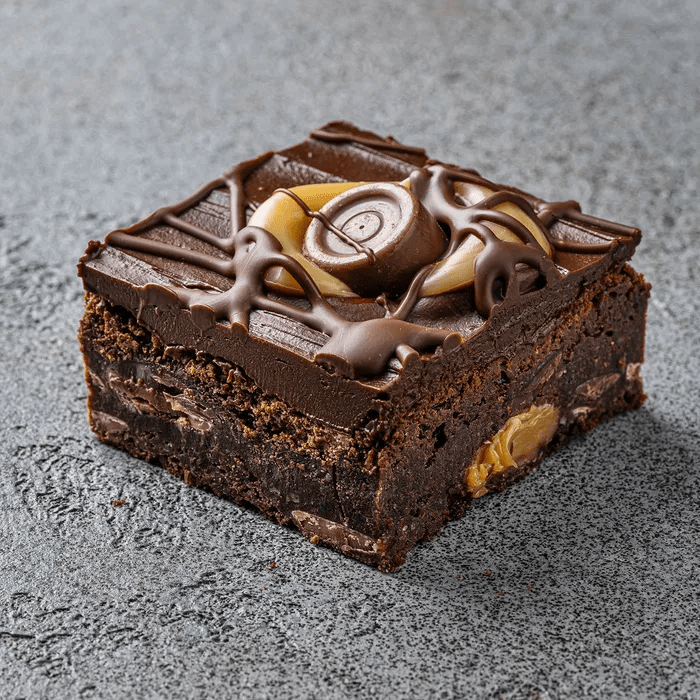 This is a wonderful combination of luxurious caramel and Rolo’s sandwiched between chocolate Belgian brownie, resulting in the perfect treat for an afternoon pick me up. The gooey chocolate brownie is generously smothered with a chocolate drizzle, caramel drizzle and of course more Rolo’s!
